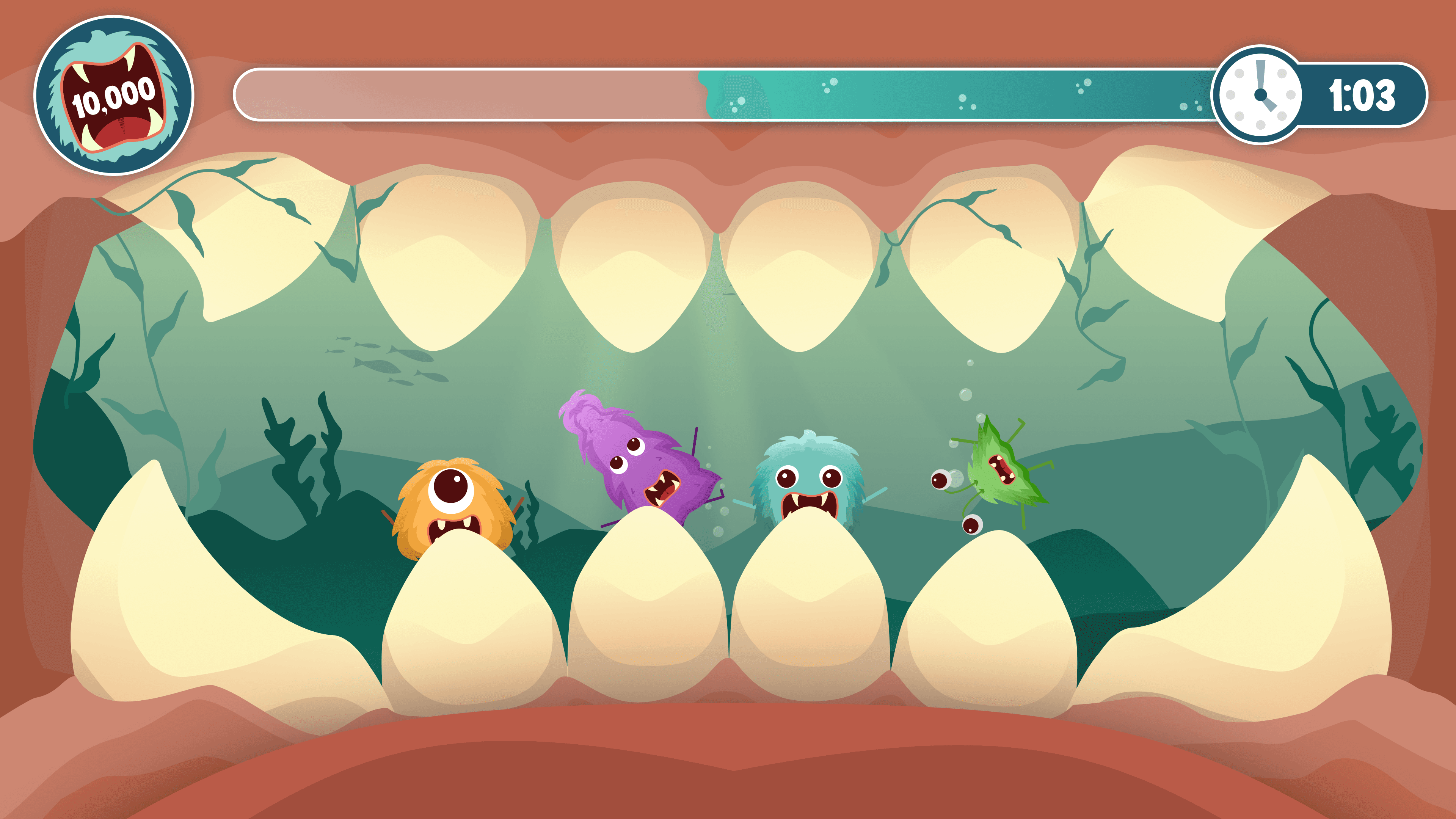 This project began as a senior capstone for Imagine RIT, bringing together six designers and four developers to create an interactive game using an alternative controller. In Floss Boss, players take the role of a shrimp cleaning a monster’s teeth with a giant toothbrush and flosser, creating a fun and engaging experience for all.