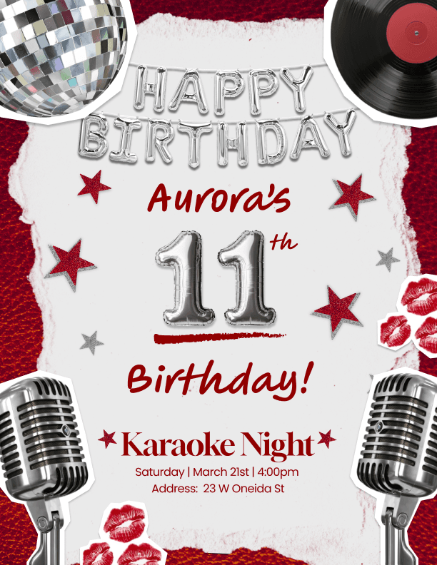 This project was commissioned for a birthday party with a red, black, and silver theme. The client wanted to incorporate a strong karaoke inspired aesthetic, which guided the overall visual direction. This project allowed me to explore creative concepts while balancing the client’s vision with effective layout, typography, and cohesive design elements.