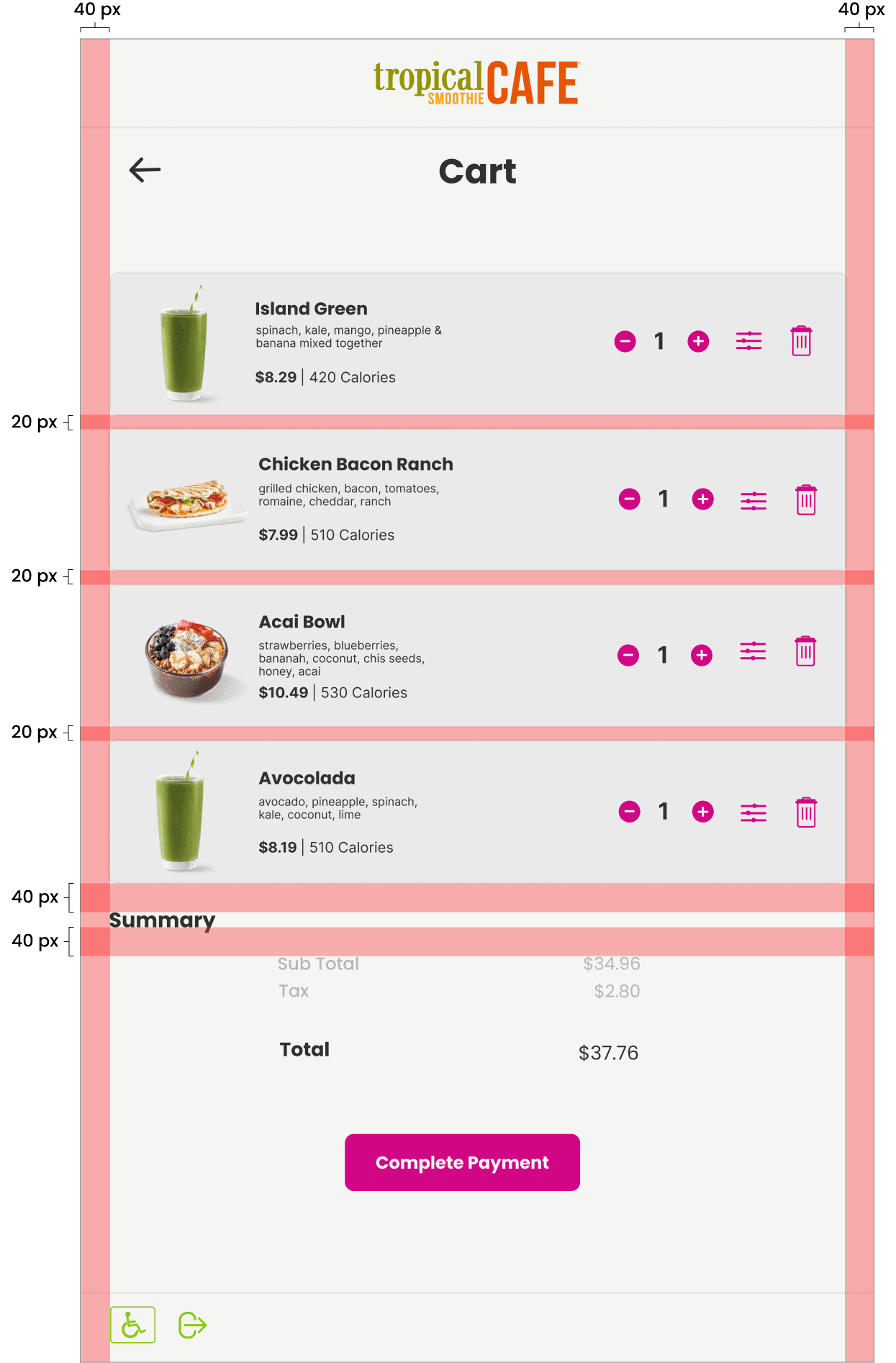 Once I went through the structure and alignment and made sure the spacing was correct I was able to create my final comps and continue on with prototyping.