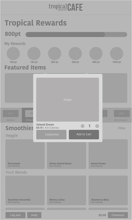 Wireframe - Item Selection & Customization