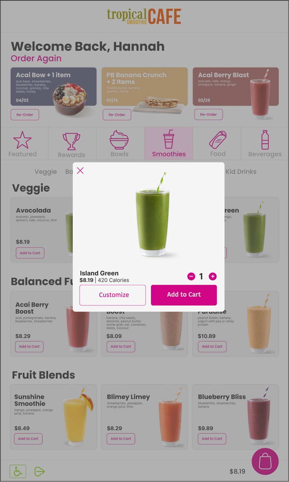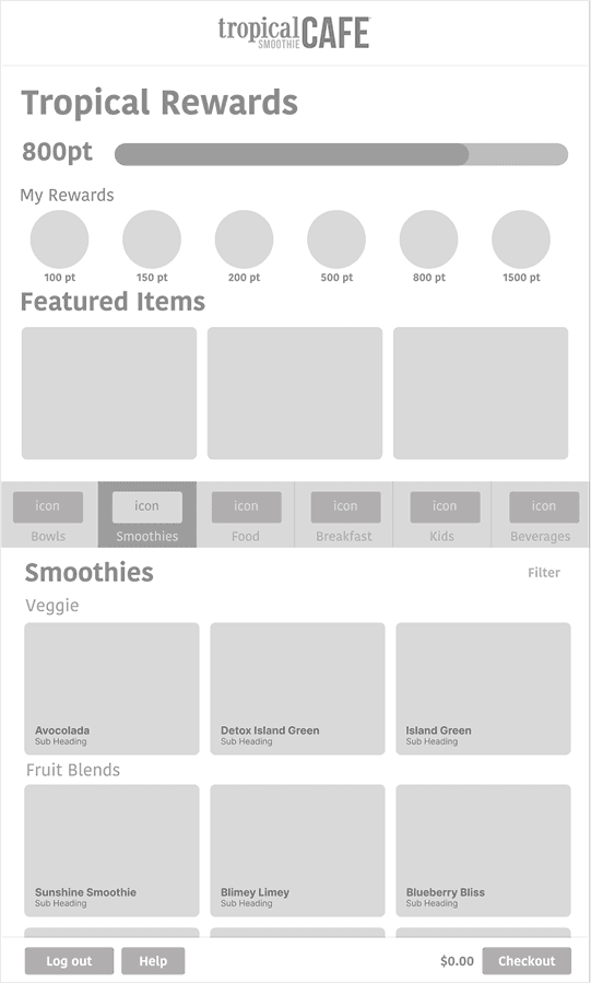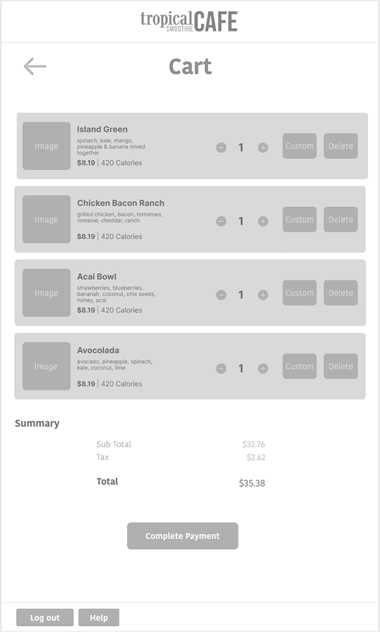 This Prototype kiosk was based of Tropical Smoothie cafe. I was prompt with creating a kiosk based on a existing company that did not already have a kiosk.