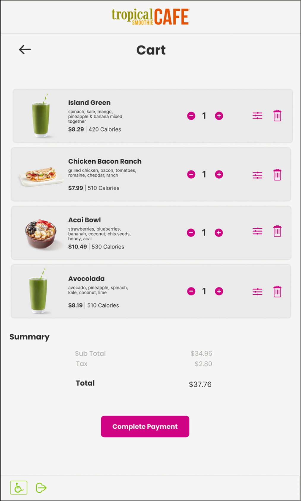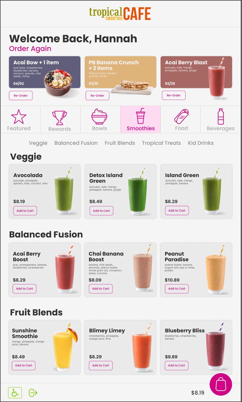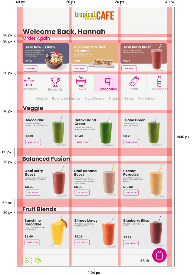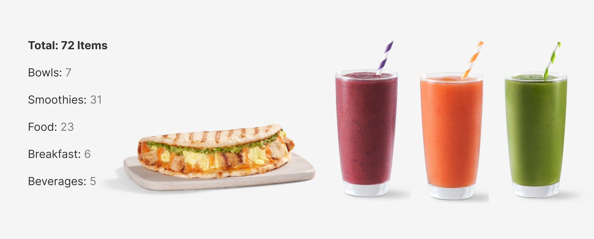 Part of my research included analyizing Tropical Smoothie Cafe's menu and organizing the products to determine total of items and categories that would need to be included.